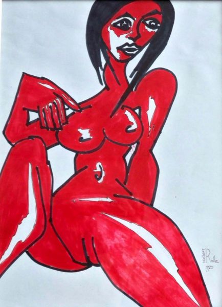 Hier ein frecher, schneller Akt von Norbert Rolle aus Berlin, hinter Glas im schwarz-silbernen Holzrahmen. Norbert Rolle ("norbertus") ist als bekannter expressiver, gerne auch mal politischer, Berliner Künstler und Kollege von bspw. Peter Skamira, Peter Keil oder Horst Lesniewicz aus Berlin Steglitz, wohl den so genannten "Jungen Wilden" zuzurechnen - aber bleibt man ewig jung?