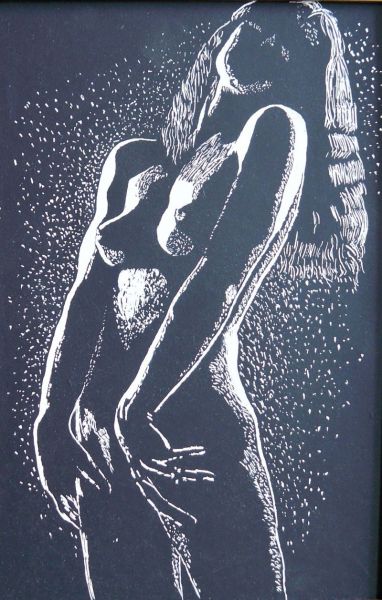 Eines von zwei sehr dekorativen Bildern im stabilen, dunklen Holzrahmen. Gemalt mit Weiß auf Schieferplatte.