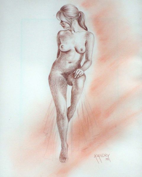 Sehr schöner, akademischer Akt mit Bleistift- und Rötelzeichnung, nachträglich mit Kreide nachgeweisst.