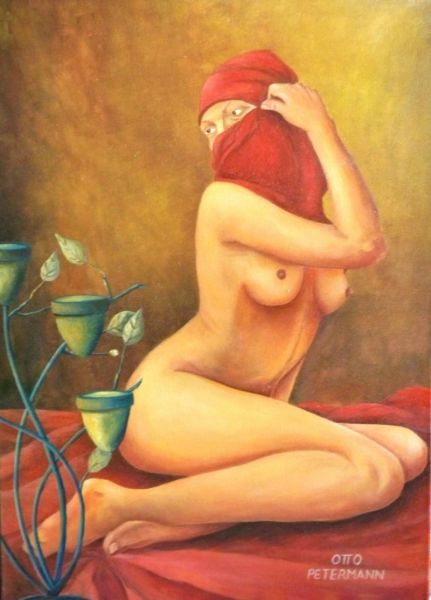 Leicht surrealistisch oder fantastisch anmutendes Gemälde einer nackten, verschleierten Frau, mit sehr erotischem, orientalisch-verführerischem Flair.Leicht surrealistisch oder fantastisch anmutendes Gemälde einer nackten, verschleierten Frau, mit sehr erotischem, verführerischem Flair.