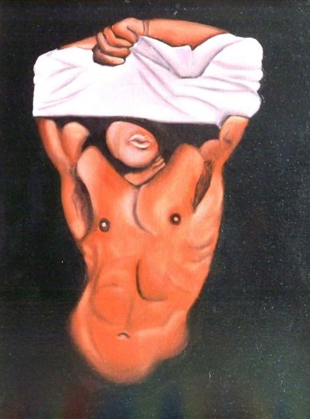 Interessantes Gemälde der Gay erotic aus einer Serie mit fünf Bildern. Nicht alle signiert und datiert mit "Wolf" und "03".