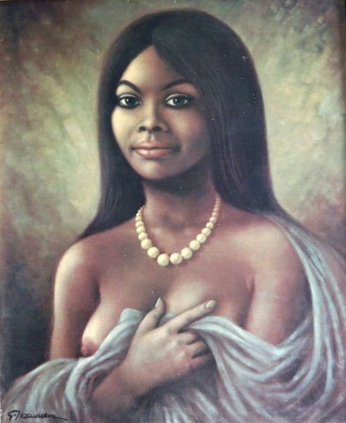 Wahrscheinlich Öldruck-Kopie eines beliebten Original-Motivs. Signiert "G. Nasuadba", bezeichnet - "Liza". Exotisches Halbporträt einer bezaubernden Pazifikschönheit, wahrscheinlich aus Bali, im elfenbeinfarbenden Holzrahmen.
