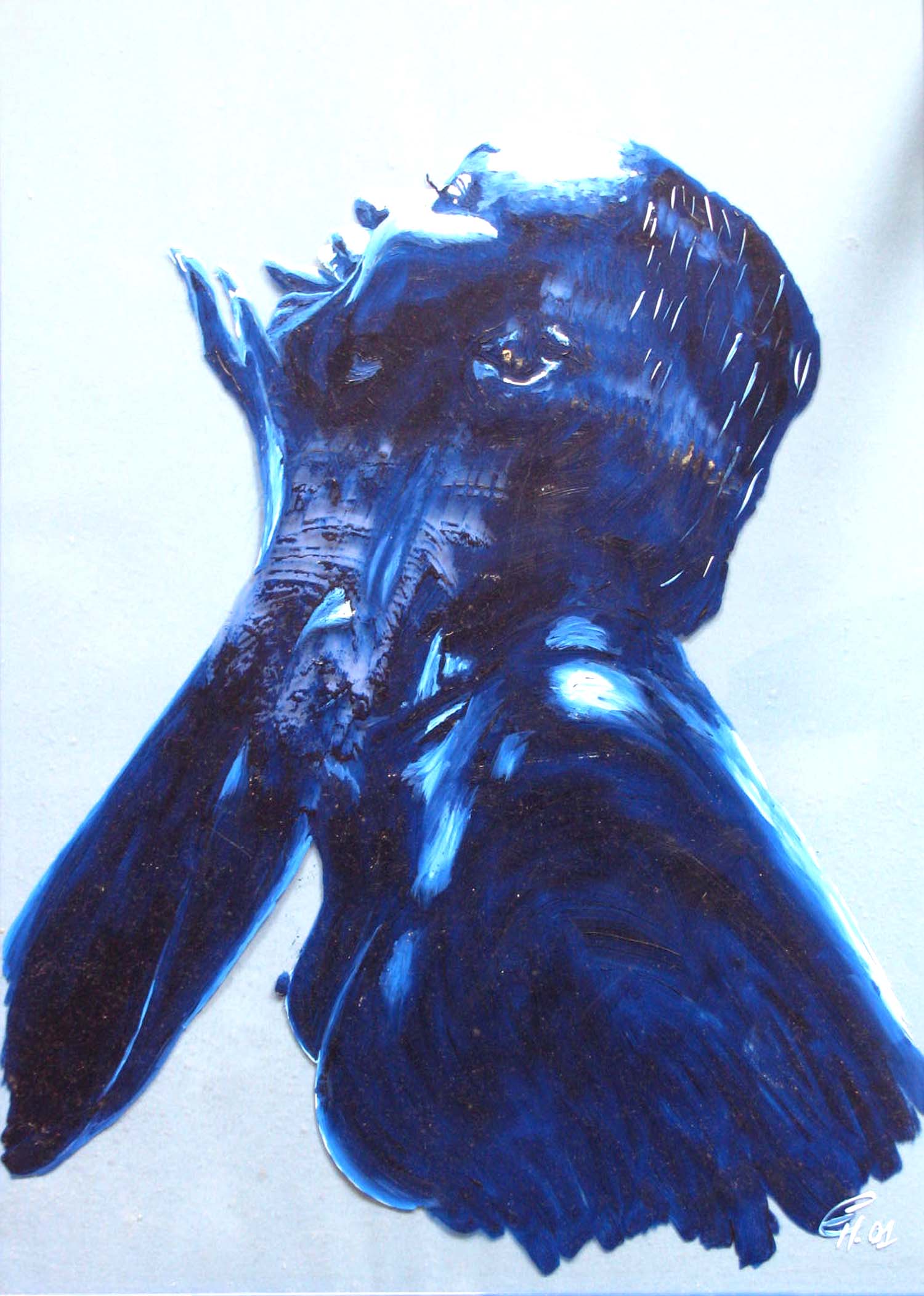 Monogrammiert E. H. - Ebony zeigt Zunge. Direkt auf eine Glasscheibe gemalt