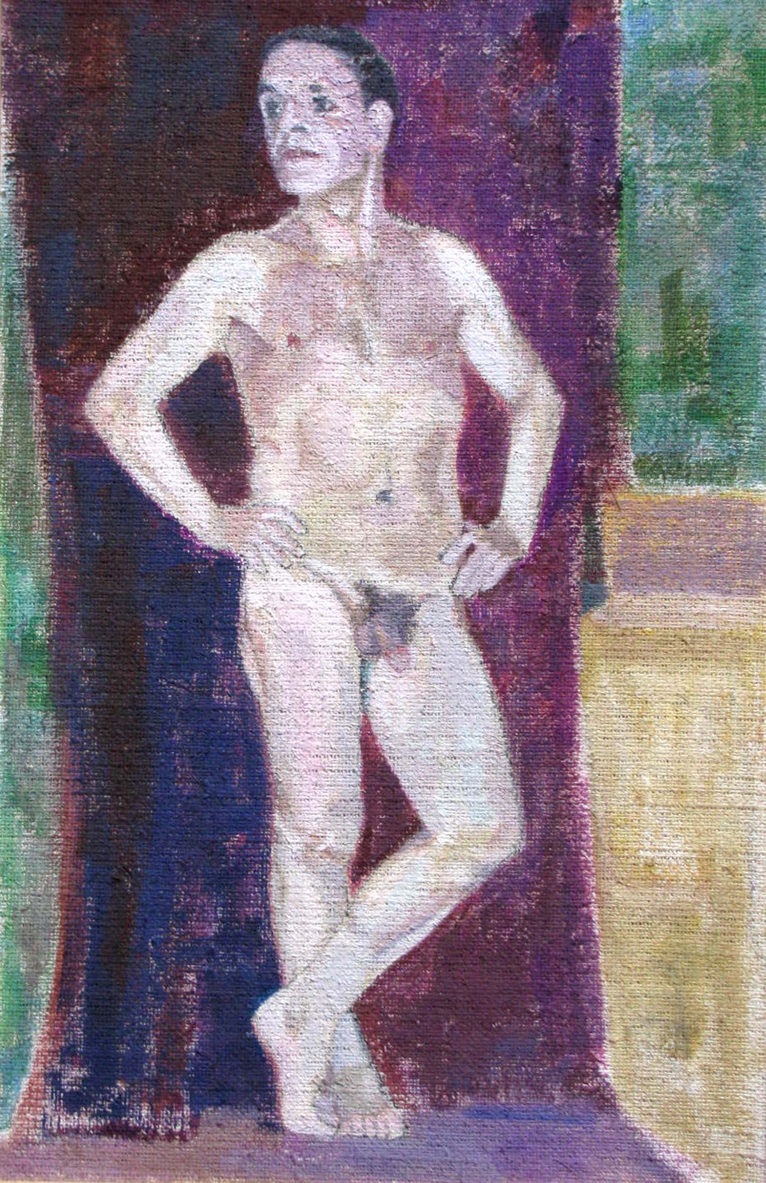 Unbekannt - Männlicher Akt an Baum gelehnt, auf der Rückseite mit Bleistift datiert "15.03.82"