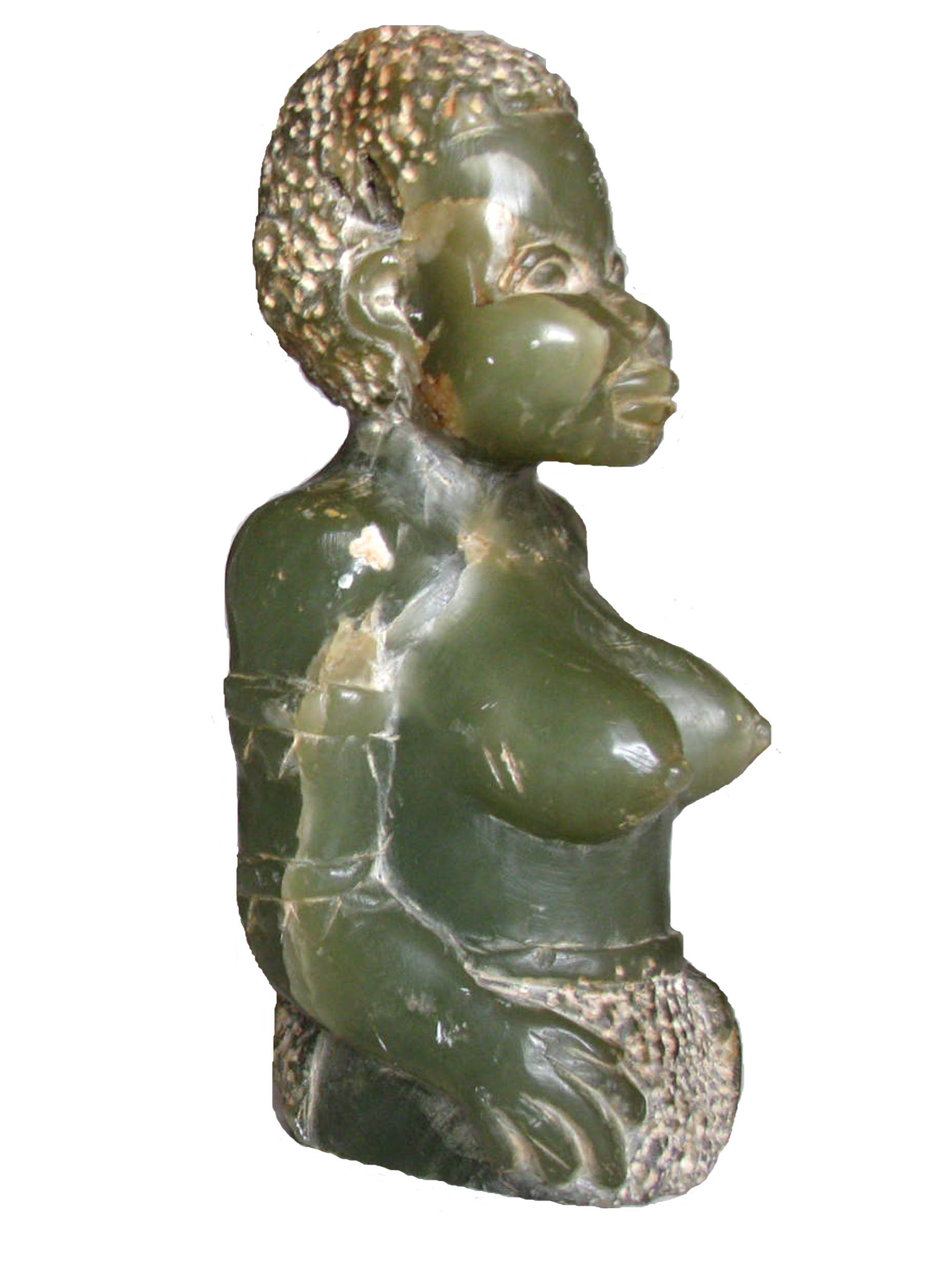Unbekannt - Statuette Afrikanischer Halbakt gruener Stein