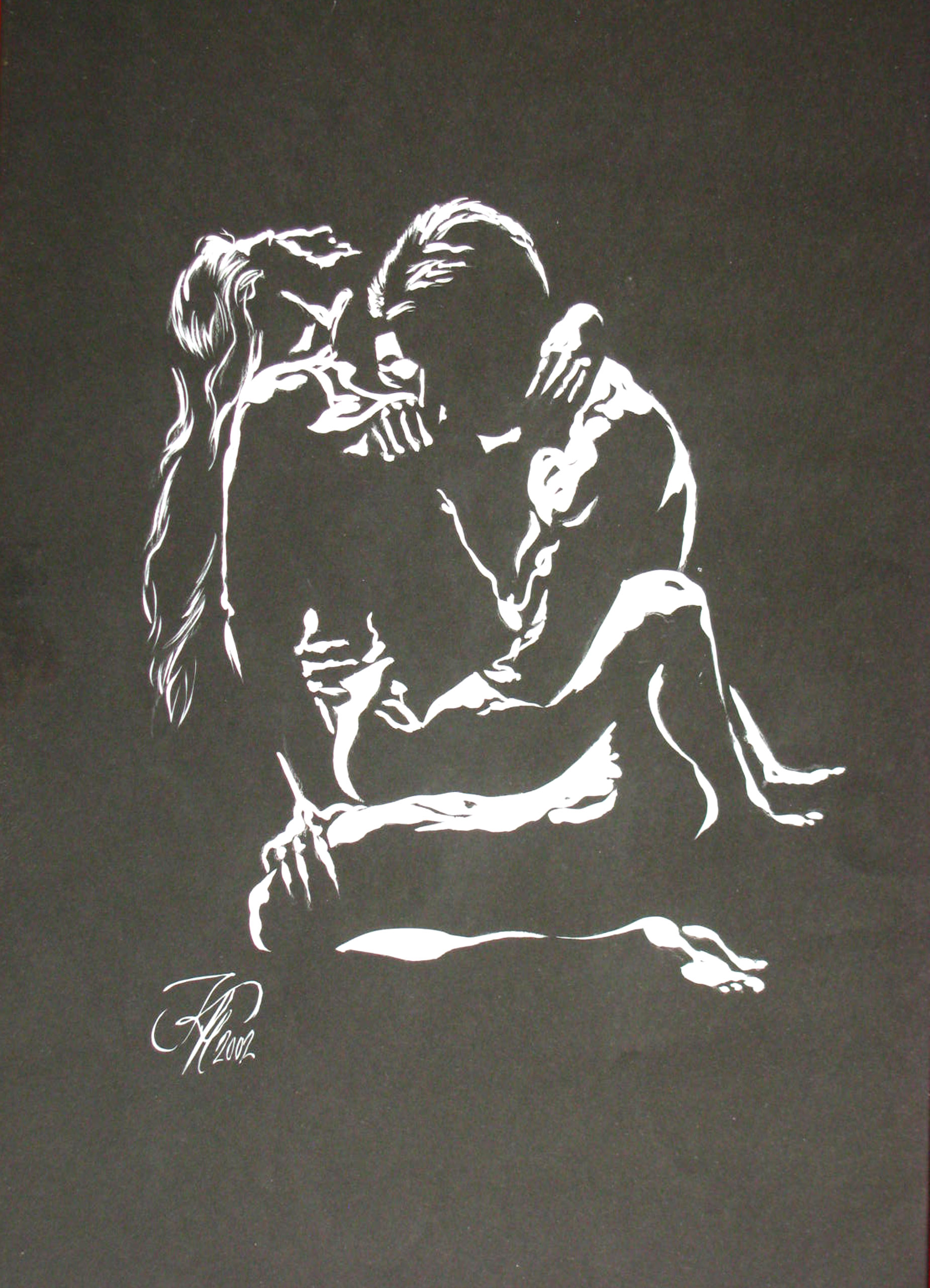Schattenmalerei mit weiß auf schwarzem Karton
