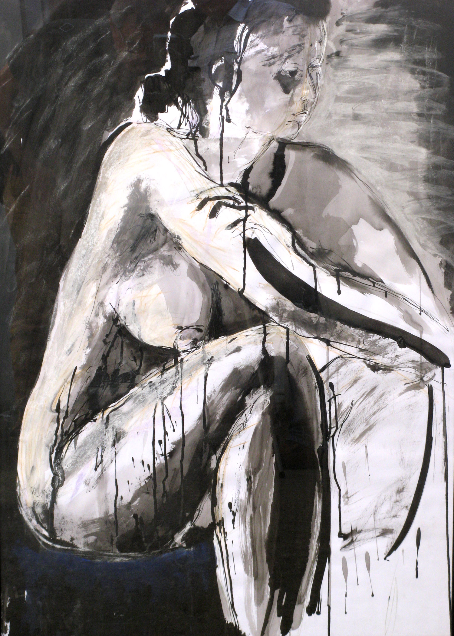 Ausdrucksstarkes Aktgemälde eines sitzendes Aktes in Schwarz-Weiss