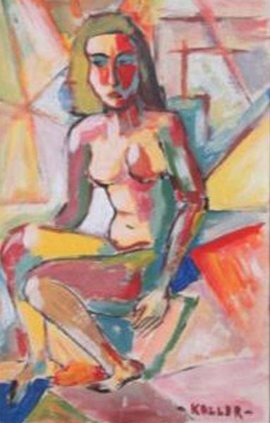 Józef KOLLER (geb. 1942). Kubistisch-expressionistisches Gemälde von 1970. Öl auf Malplatte, im silbernen Holzrahmen.