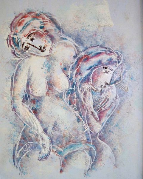 Feine, sehr schöne, zarte, impressionistische Ausführung in Pastelltönen.