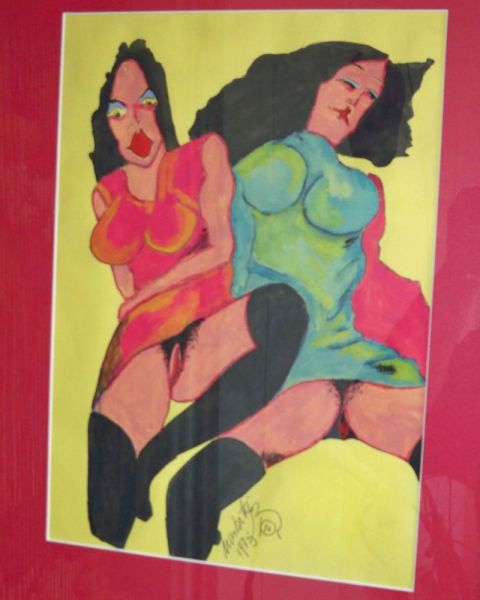 Zeichnung / Aquarell auf festem Zeichenpapier, im dunklen Holzrahmen hinter Glas. Norbert Rolle ("norbertus") ist als bekannter expressiver, gerne auch mal politischer Berliner Künstler und Kollege von bspw. Peter Skamira, Peter Keil oder Horst Lesniewicz aus Berlin Steglitz wohl den so genannten "Jungen Wilden" zuzurechnen - aber bleibt man ewig jung?