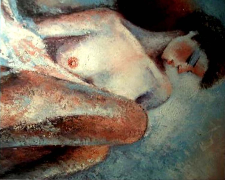 Öl auf Leinwand, nicht aufgespannt. Ebenfalls liebreizender Akt im impressionistischen Stil.