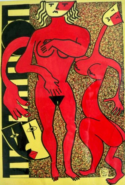 Zeichnung und Tusche auf Künstlerpapier, im schwarz-silbernden Holzrahmen hinter Glas. Norbert Rolle ("norbertus") ist als bekannter expressiver, gerne auch mal politischer, Berliner Künstler und Kollege von bspw. Peter Skamira, Peter Keil oder Horst Lesniewicz aus Berlin Steglitz, wohl den so genannten "Jungen Wilden" zuzurechnen - aber bleibt man ewig jung? Hier eine abstrakt-poppige Grafik mit Tusche und Kugelschreiber-Zeichnung.