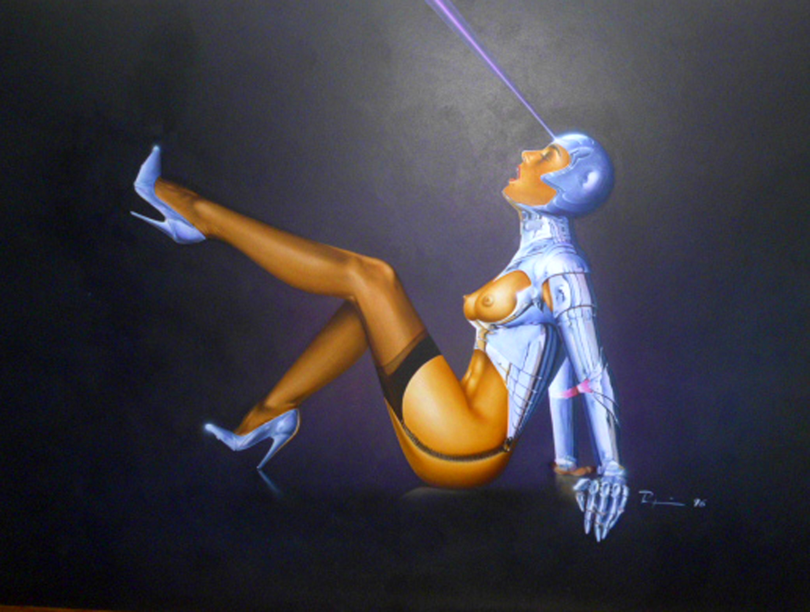 Sogar der hybride oder ganz-metallische Körper der Mensch-Maschininnen in Andreas Raufeisens Akten ist fragil, verwundbar und in seiner überirdischen Schönheit doch auch bedroht von Profanität oder Fernsteuerung oder einem Ressentiment, das weiterhin keine selbstbewussten, weltgewandten, interrassischen Frauen zulassen würde, wenn es sie denn gäbe. Auch hier suggerieren die Korsage, die Strapse und das Kleidchen den Models einen gewissen Schutz und Sicherheit vor etwaigen Übergriffen durch Selbstbemächtigung und Struktur, die sie sich selbst geben.
