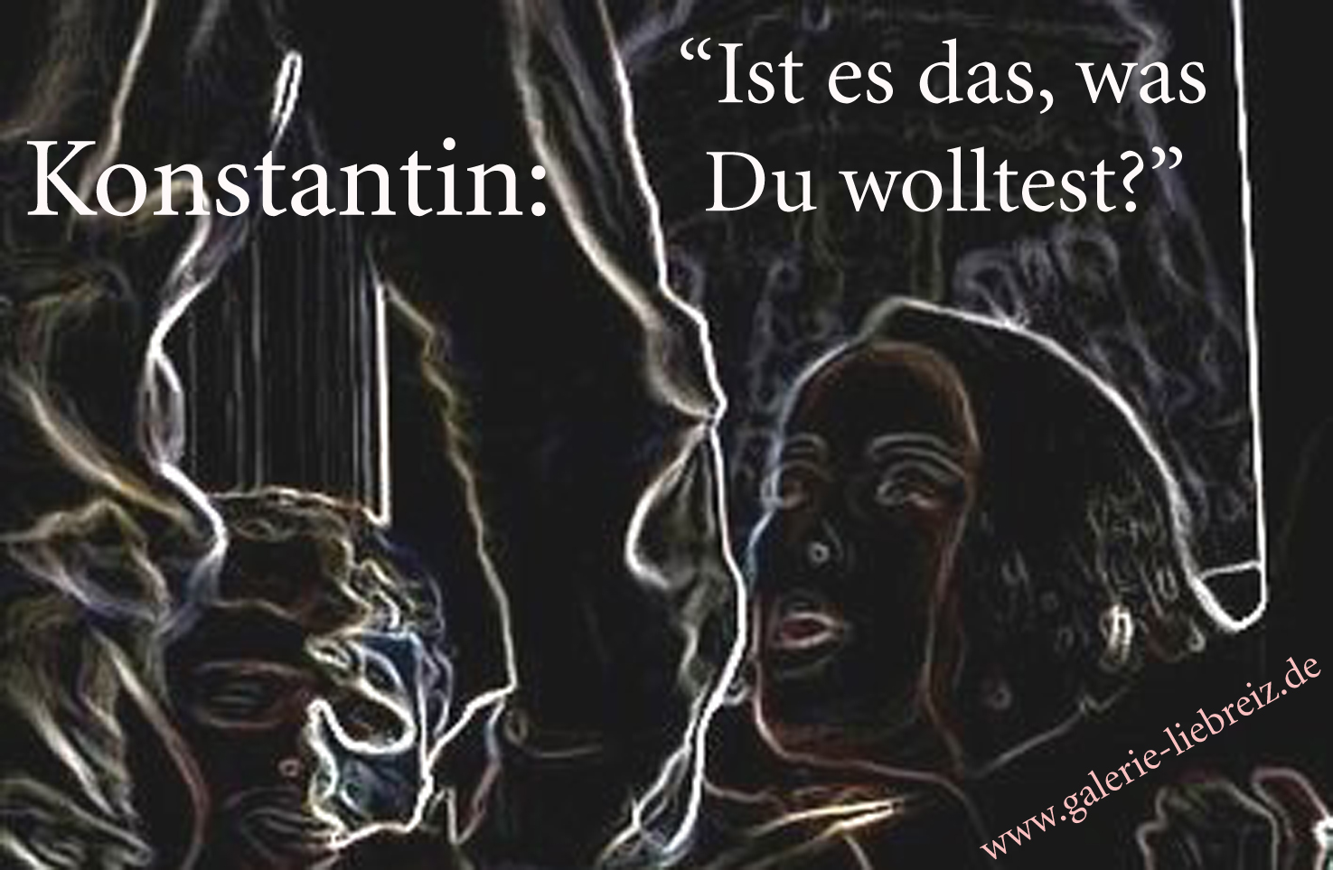 Die Vorlage für die hier gezeigte aktuelle Serie von Konstantin, "Ist es das, was Du wolltest?", bilden pornografische Fotografien aus dem Internet, nun aber verfremdet, ohne jedoch das Sexuelle komplett herauszufiltern. Solche Images der digitalen Bildkultur, die hier die Grundlage bilden, sind sehr begehrt und werden millionenfach angesehen und angeklickt. Wie kann das pornografische Material angemessen in das künstlerische Feld überführt werden? Einige Künstler der Pop-Art und Postmoderne, wie Gerhard Richter oder Thomas Ruff haben in ihren Arbeiten mit pornografischem Bezug schon auf das Stilmittel der Unschärfe, Verfremdung und Verflüchtigung zurück gegriffen. Bilder, festgehalten in einem Zustand des Verblassens, wie die Erinnerung an erotische Traumsequzen am Morgen danach.