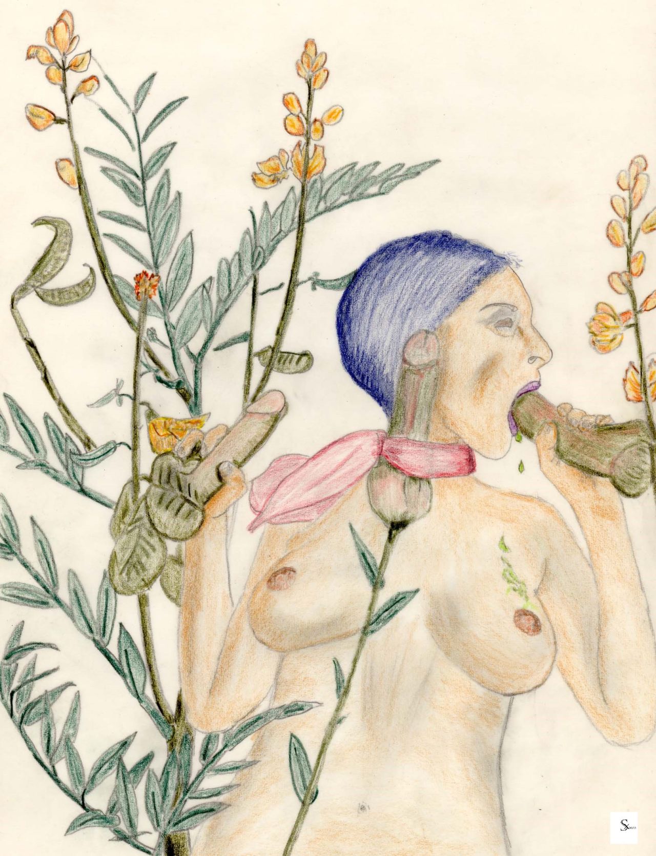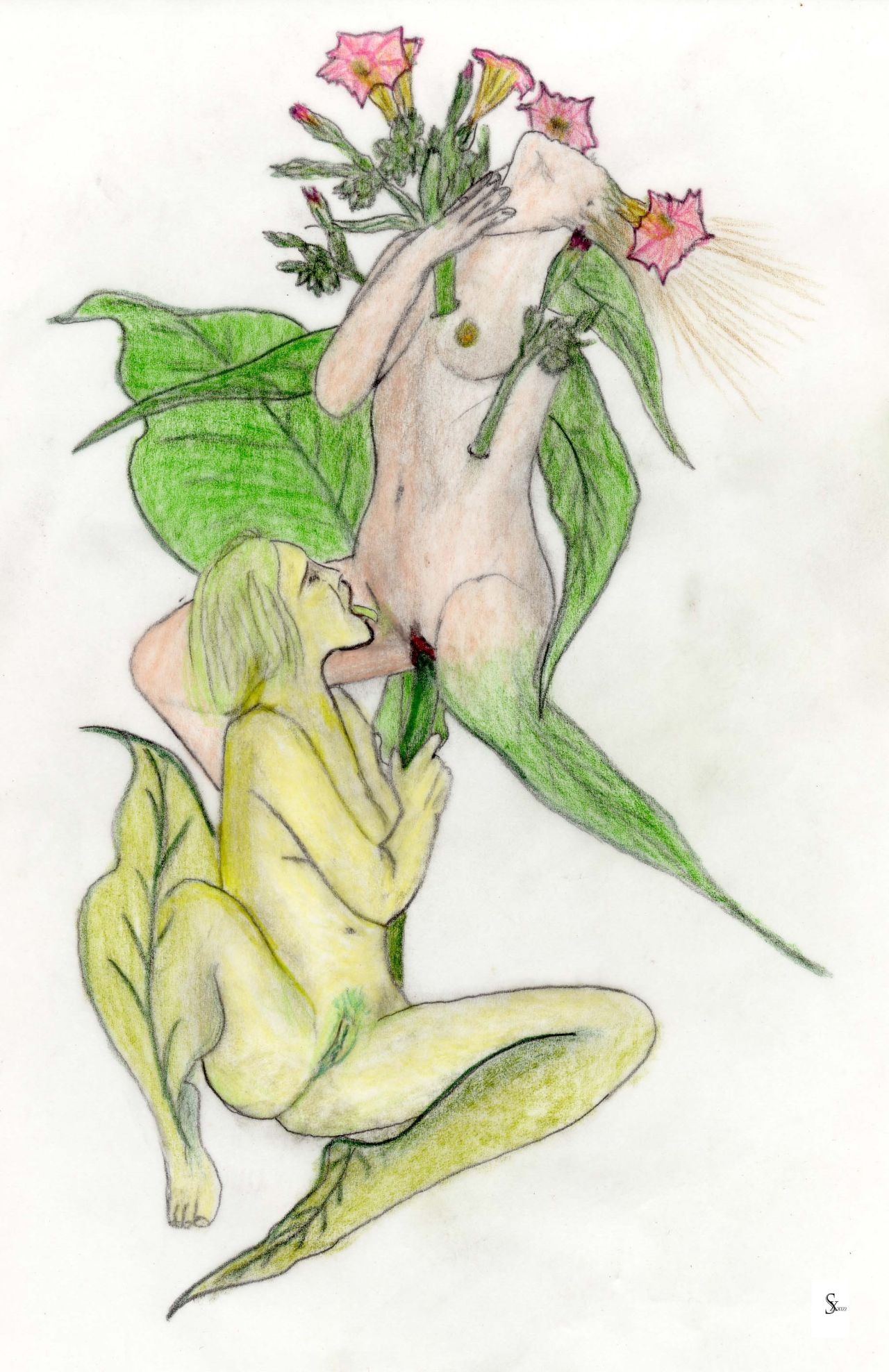 Schließlich entstanden jene Mischwesen, erotische Metamorphe aus Menschen und Pflanzen, die sich gegenseitig durchsetzen und durchwuchsen, unvermutet auch tierhafte Gestalt annehmend oder mit Diesen verschmelzend."