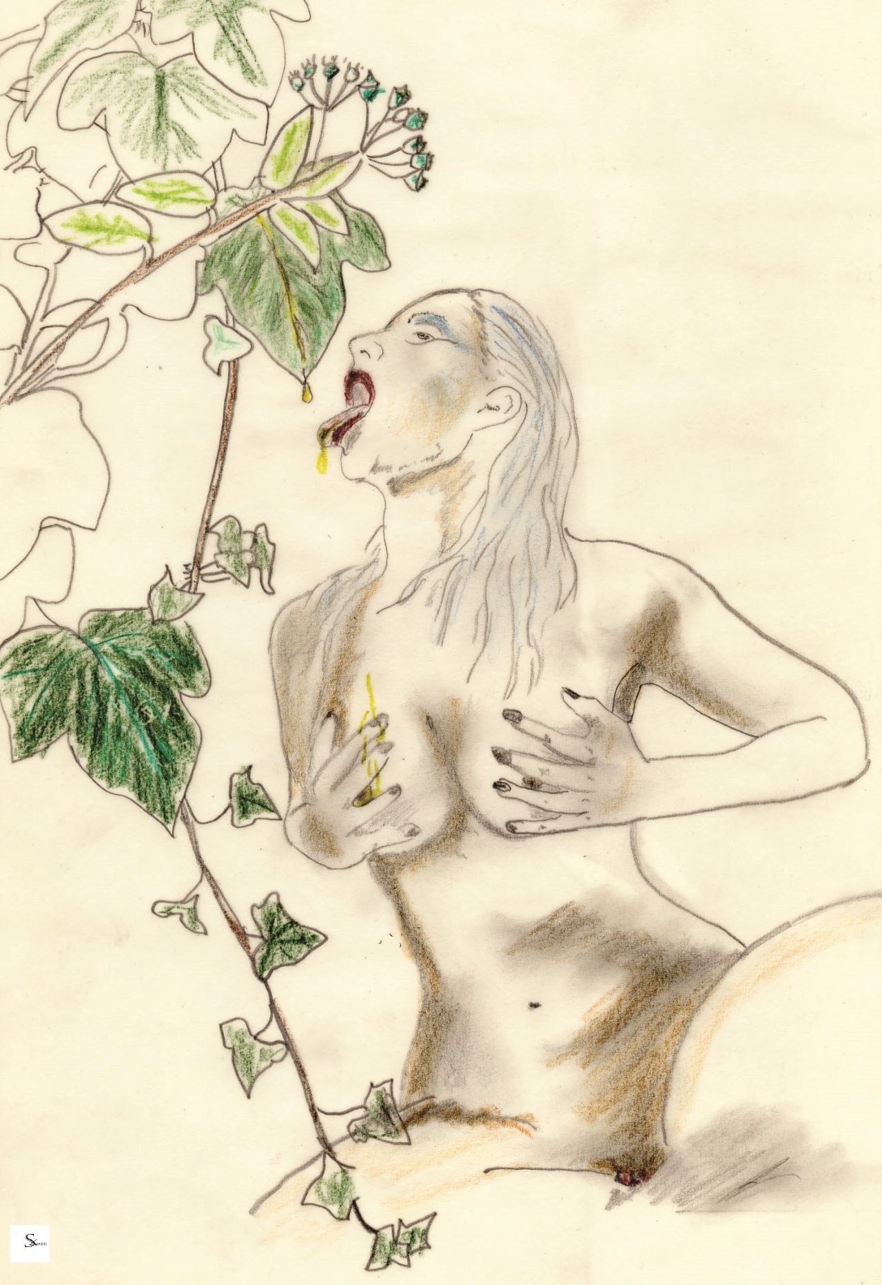 Irgendwann, ich glaube, es war im Jahr 2010, setzte ich mich zum ersten Mal an meinen Schreibtisch und begann zu zeichnen. Gab den Schatten in meinem Inneren Substanz, eine Gestalt, erlaubte plötzlich erscheinenden Nachtmahren, Dämonen und manchmal engelhaften Geistern, auf einem Blatt vor mir Gestalt anzunehmen. Vaginen, Brüste, Penisse, Penetrationen und lüstern blickende Vampire, verschlingendes und zärtlich Aufnehmendes, fordernde und laszive Wesen, blinzelten sich ihren Weg in meine bewusste Wahrnehmung; führten meine Finger über das Papier. (...)"